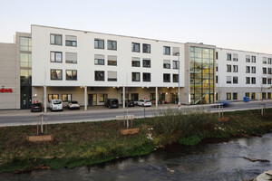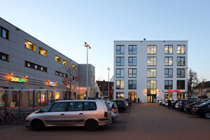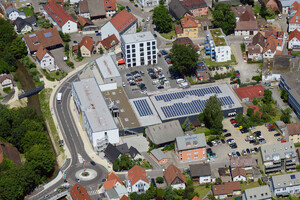 Neubeauung der Rupf-Areals in Laupheim mit Vollversorger, Discounter, Pflegeheim und verschiedenen Geschäftsräumen/Büros.