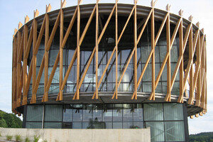 Beim Bau des Biomasse-Kraftwerks der Fa. Schilling in Schwendi wurde durch unsere Holzbau-Abteilung das komplette Kuppeldach aus Holzleimbindern sowie das bildprägende Holzgitter, ebenfalls aus Holzleimbindern, in bester Zimmermannstradition ausgeführt.