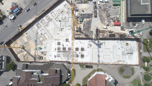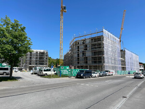 Neubau von einem 6-geschossigen u. von zwei 4-geschossigen Wohn - und Geschäftshäusern mit durchgehender Tiefgarage in Stahlbeton-Bauweise.
