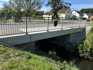 Abbruch der alten Brücke, Aushub und Spundwände für die neue Brücke, Bau der Fundamente und Widerlager, Bachumleitung, Traggerüst, Neuaufbau der Brücke inkl. Geländer und Straßenarbeiten