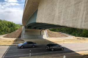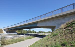Ersatzneubau der Brücke über die B10, 52 Meter lang, VFT-Trägerbrücke
