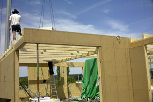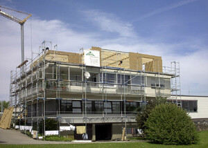 Ein bestehendes Bürogebäude in Hörenhausen erhielt wurde um eine Aufstockung in Holzelementbauweise für eine Wohnung ergänzt. Die Erschliessung erfolgt mittels eines neu eingefügten Aufzugs.