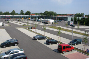 Schlüsselfertige Realisierung eines Fachmarktzentrums, bestehend aus drei Gebäudeteilen mit insgesamt sechs Mieteinheiten.