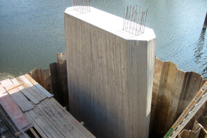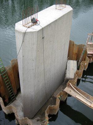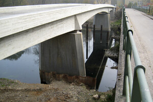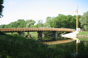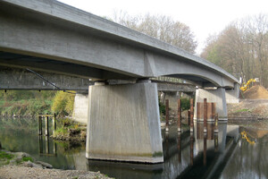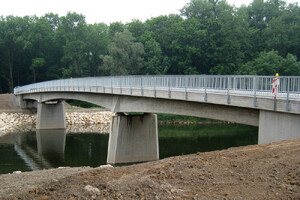 In direkter Nachbarschaft der bestehenden Geh- und Radwegbrücke über die Donau beim Kraftwerk der SWU wurde eine neue 3-Feldbrücke mit fein gegliedertern Ortbetonstützen im Fliesbereich der Donau erstellt.
