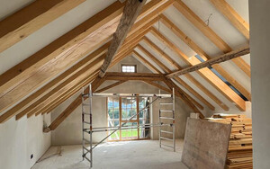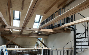 Dacharbeiten am historischen Gehöft als Umbau zum Wohnhaus