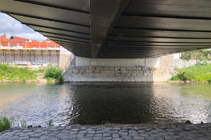 Erneuerung best. Hochwasserkanalbrücke, Neu: Bogenbrücke als Stahl-Verbundüberbau