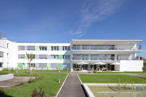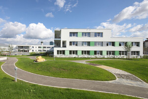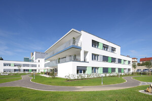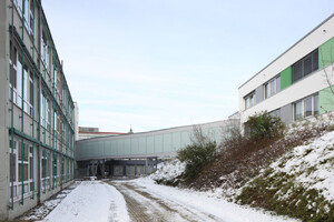 Das Krankenhaus Ehingen wurde um ein Ärztehaus mit Dialysezentrum und ein Pflegeheim zum Schafmarktsportplatzgelände hin erweitert. Die Erweiterung, eine Planung der Architektengemeinschaft Seibert Burkle Hahnemann aus Stuttgart, erfolgte als drei- bis vier-geschossiger Stahlbetonskelettbau und wurde in ARGE mit der Firma Reisch, Bad Saulgau realisiert.Als weiteres Baulos konnte der Verbindungssteg, welcher den Bestandsbau mit dem Neubau am Schafmarktsport verbindet, komplett durch die Matthäus Schmid Stahlbau GmbH & Co.KG realisiert werden - dies umfasst sämtliche Leistungen von den Fundamentarbeiten, über die Stahlkonstruktion einschliesslich Statik und Werkstattplanung, die Trapezblechdeckung bis zur Glasfassade.Die Konstruktion des Verbindungsstegs erfolgte in drei Bauteilen im Werk in Baltringen. Eine besondere Herausforderung stellte dabei die komplexe Geometrie des Stegs dar: neben drei Richtungsänderungen mussten im Neigungsverlauf neun Knickpunkte umgesetzt werden um die Höhendifferenz von 94cm zwischen Alt- und Neubau zu überbrücken.
