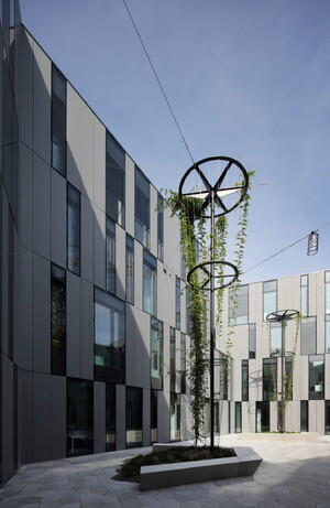 Neubau des 5-geschossigen Verwaltungsgebäudes mit Tiefgarage.