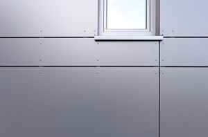Ausführung einer HPL-Fassade auf Alu-Unterkonstruktion mit Dämmung.