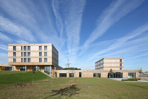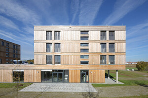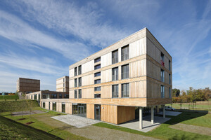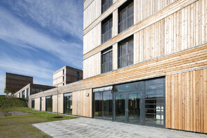 Im Zuge des Neubaus des Rehabilitationszentrums der Zieglerschen Anstalten in Bad Saulgau wurde die gesamte Fassadenbekleidung durch den Holzbau der Matthäus Schmid Bauunternehmen GmbH & Co. KG umgesetzt. Dabei kam eine unbehandelte Lärchenbekleidung auf einer Aluminium-Unterkonstruktion mit Dämmung zur Ausführung.