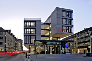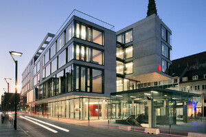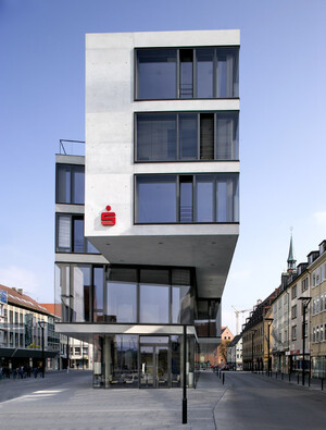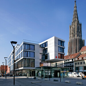 Ausführung der Sichtbetonarbeiten beim Neubau der Hauptgeschäftsstelle der Sparkasse zwischen Münster und Rathaus in Ulm im Zuge der Umsetzung der Planungen zur Neuen Mitte Ulm.
