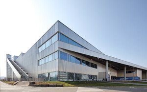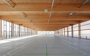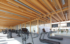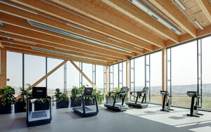 Aufstockung der bestehenden Logistikhalle um ein Fitness- und Betriebssportzentrum mit Holztragwerk